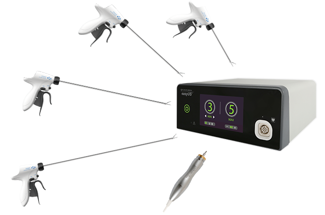 EasyUS Ultrasonic surgical system can promote hemostatic cutting and coagulation of soft tissues and vessels up to 5mm in diameter. It has been widely applied in a variety of open and endoscopic surgeries like Bariatric surgeries, Thoracic surgeries, Colorectal surgeries, etc.