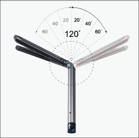 - The combination of 120° articulation and shortened jaw length improves accessibility and maneuverability, contributing to efficient operation.
