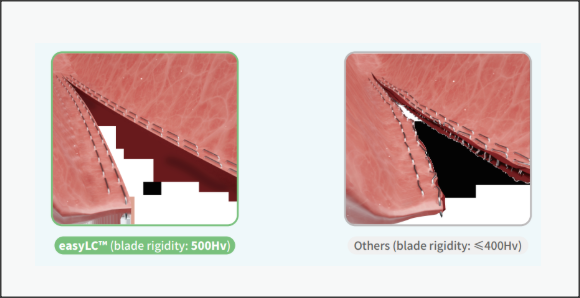 The easyLC™'s stainless blade is at least 20% harder than comparable products, which helps achieve smoother and more precise cutting, reducing bleeding caused by tearing.