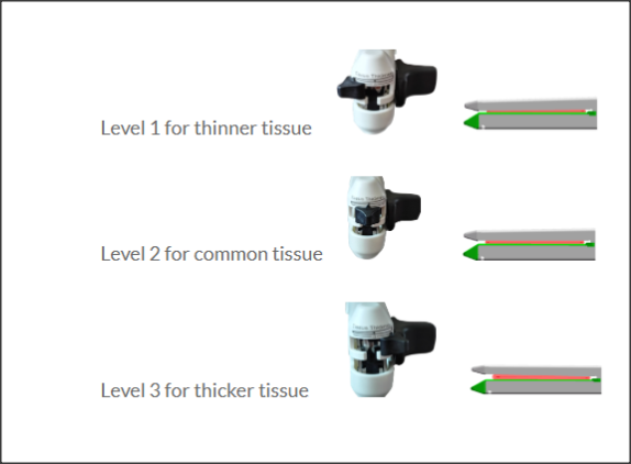 A wide choice of needles, made of stainless steel with an alloy from the 300 series allowing adaptation to all types of tissues