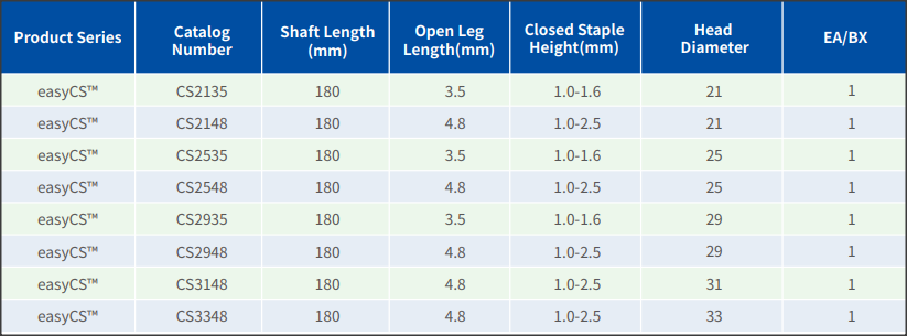Smaller Head Diameter of the anvil provides easier control for insertion and removal during placement.